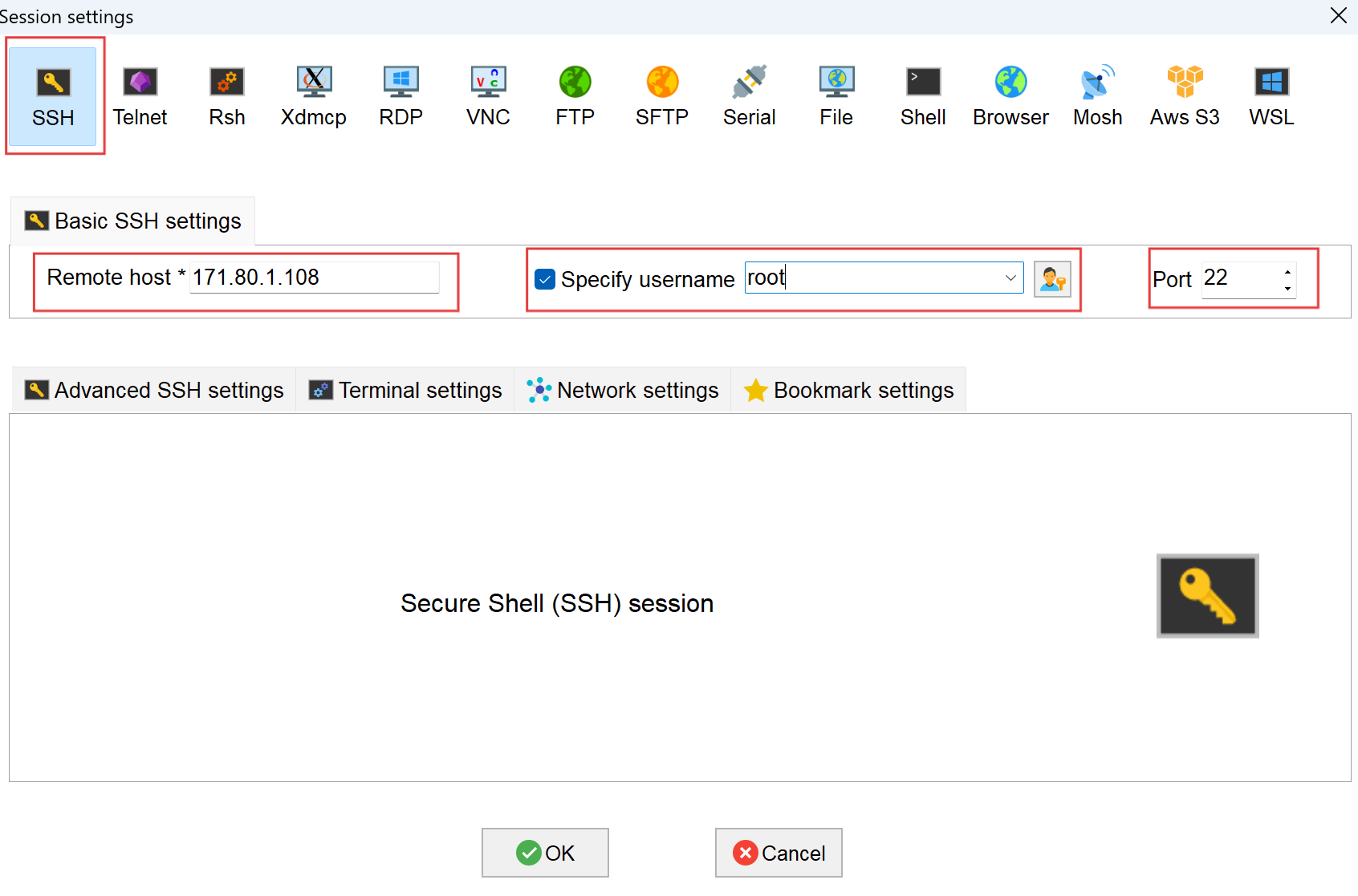 - 在 "Remote host" 输入框中填写雨云服务器的公网 IP 地址。