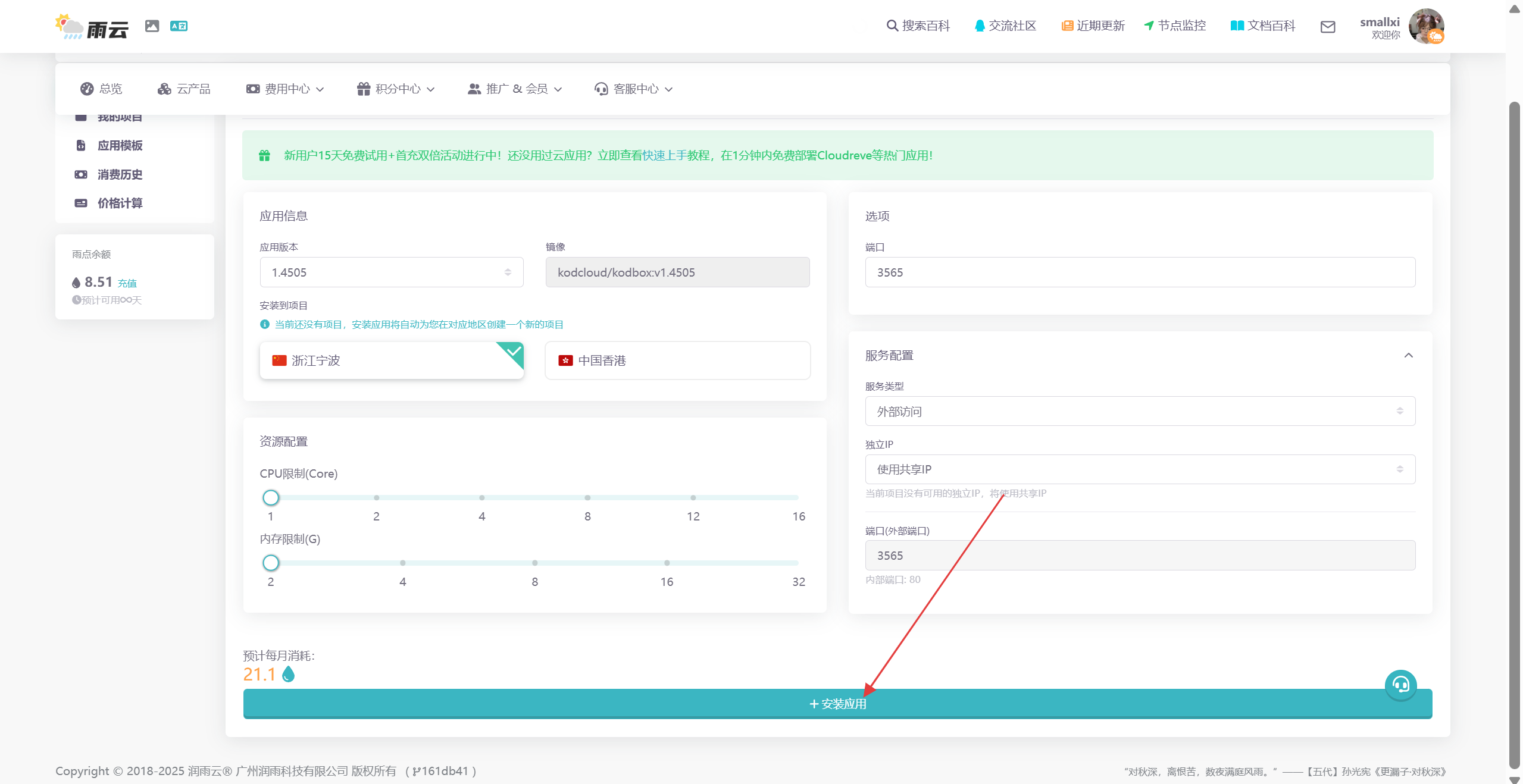 ✅ 第一步:注册雨云账号,领取10元免费额度